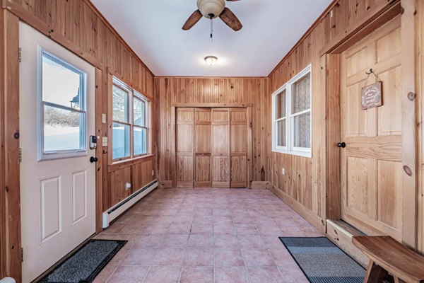 A private full bath for the bunk room with shower and toilet.